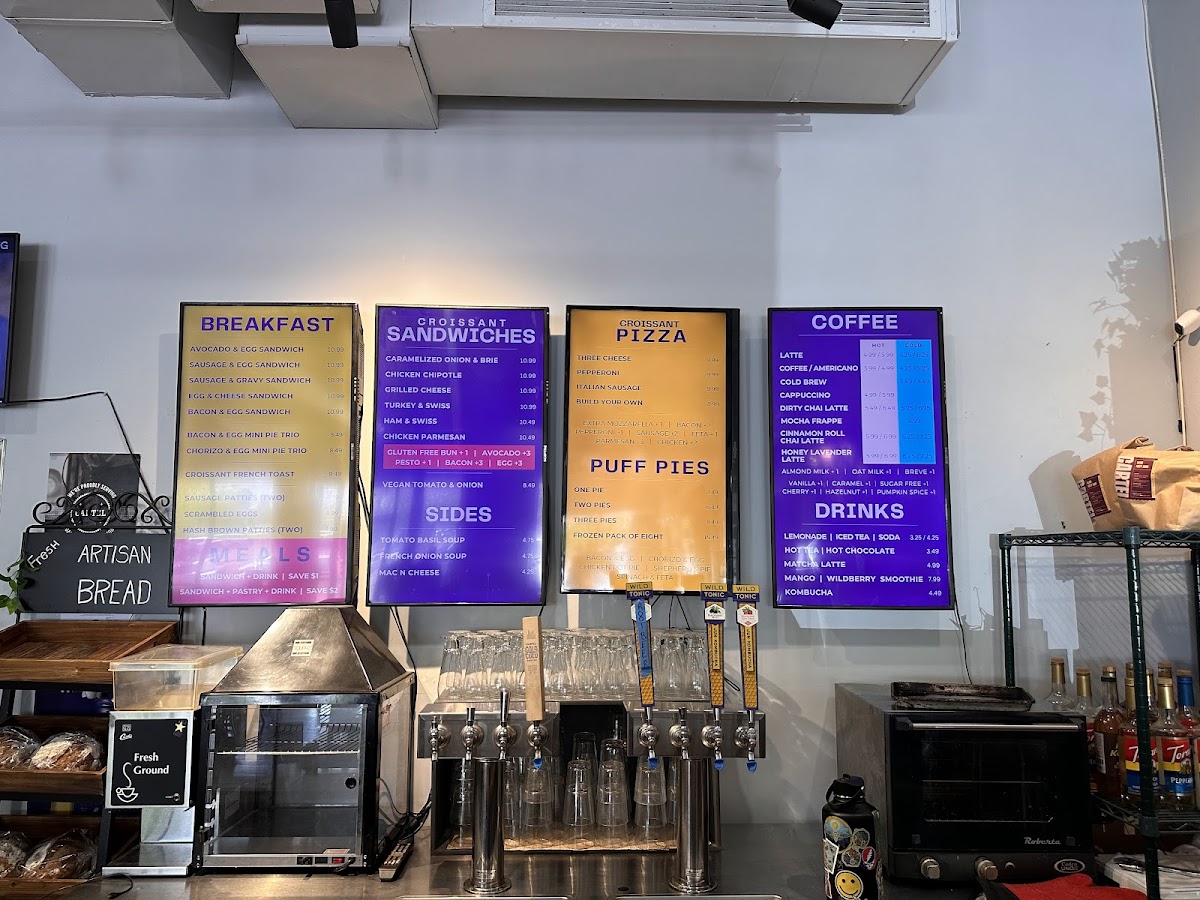 - Bakery and Pastries: The bakery offerings include croissants with several variations such as vegan raspberry, almond, cinnamon roll, and churro cookie. The sourdough bread is a notable artisanal item made with a lengthy fermentation process to develop flavor.